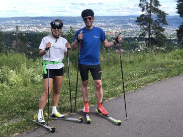 Tiril Eckhoff og Tore Bakke på treningstur i Holmenkollen. Foto: Bravida Norge