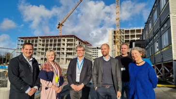 Fra venstre: Prosjektleder i Bravida Norge, Jone Vold; prosjektleder for anskaffelser i Nye SUS, Christin Vik Eliassen; administrerende direktør i Bravida Norge, Tore Bakke; regiondirektør for Agder og Rogaland i Bravida Norge, Trond-Lauritz Larsen; prosjektleder for teknikk i Nye SUS, John Jakobsen; og prosjektdirektør i Nye SUS, Kari Gro Johanson. Foto: Ingveig Tveranger/Nye SUS