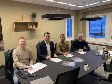 Signering: Fra venstre: Harald Ås Farstad, eier og daglig leder i AB Elektro AS, Ronny Øvrevik, divisjonsdirektør for divisjon Kysten i Bravida Norge, Daniel Åsheim, eier og prosjektleder i AB Elektro AS og Torfinn Rolandsen, regionsdirektør for region Nord i Bravida Norge.